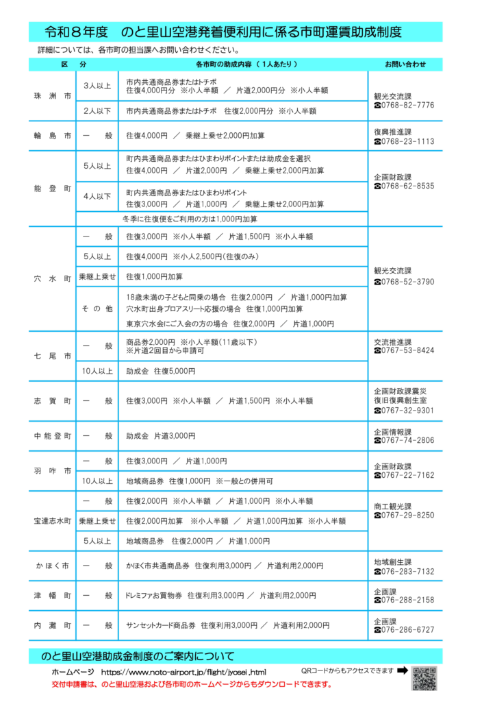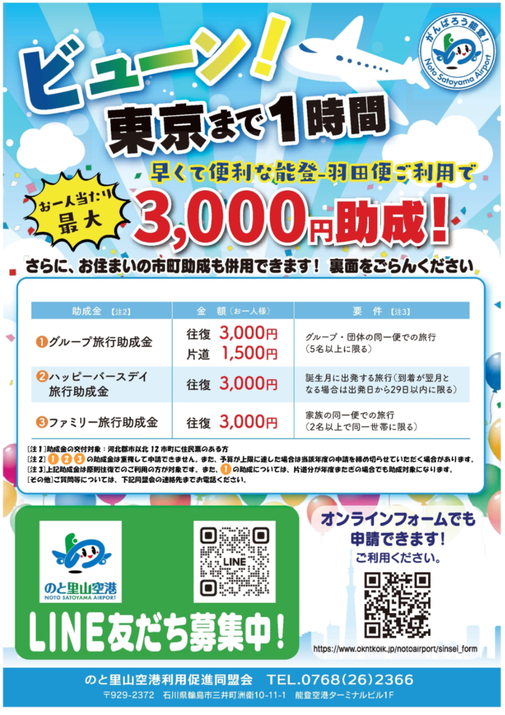 ※上記、各種助成の起点または終点は能登-羽田便or羽田-能登便のどちらでも構いません。